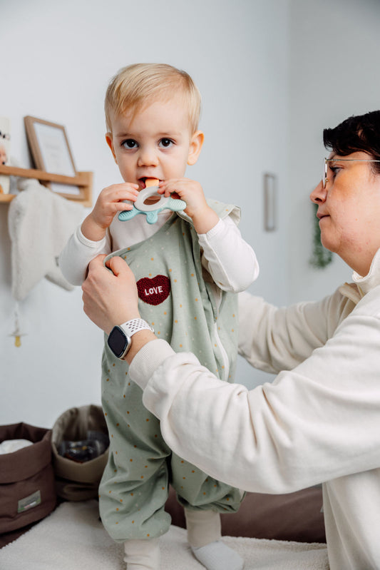 Die TOG-Werte geben an, wie warm ein Schlafsack ist. Ein niedriger TOG-Wert (z.B. 0,5) bedeutet, dass der Schlafsack leicht und atmungsaktiv ist, ideal für den Sommer. Ein höherer TOG-Wert (z.B. 2,5) zeigt an, dass der Schlafsack dicker und wärmer ist, perfekt für den Winter. Achte darauf, den richtigen TOG-Wert für die jeweilige Jahreszeit und die Schlafumgebung deines Babys zu wählen.